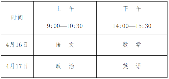 第十三条 文化考试科目为语文、数学、政治、英语四科,每科满分为150分,四科满分为600分,使用国家通用语言文字作答。