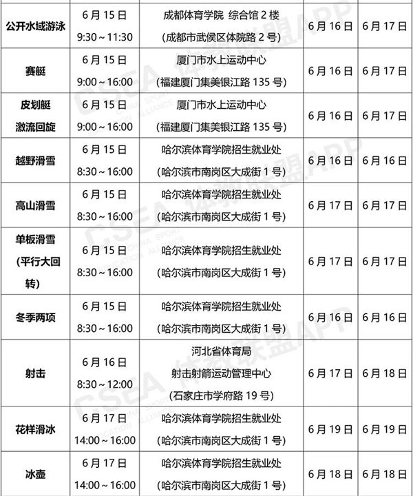 2020年体育单招专业考试安排(全国统考)